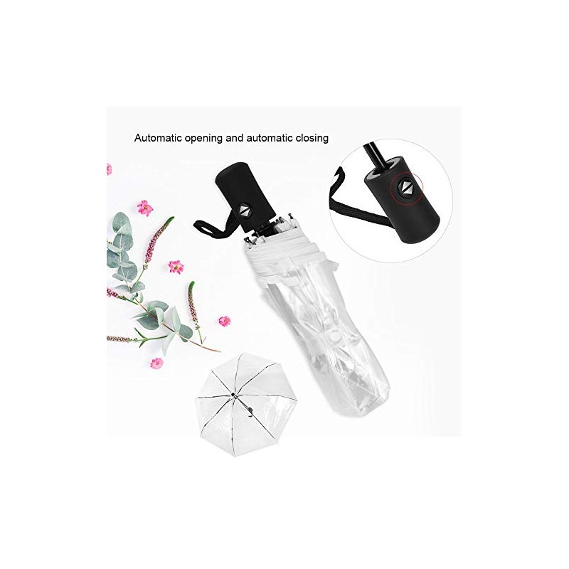 Wifehelper Folding Umbrella, Portable Automatic Transparent Sun Rain Umbrella for Outdoor, Windproof Material, Auto Open/Close, Fits Backpack, Luggage, Car