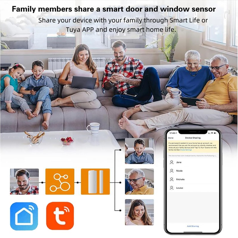 - ⭐【Voice Control】: Only supports WiFi 2.4G, and can control WiFi door sensors through Smart Life APP or Tuya APP. Voice control by connecting smart sensors with Alexa or Google Assistant. Make your smart home life more convenient and easier.