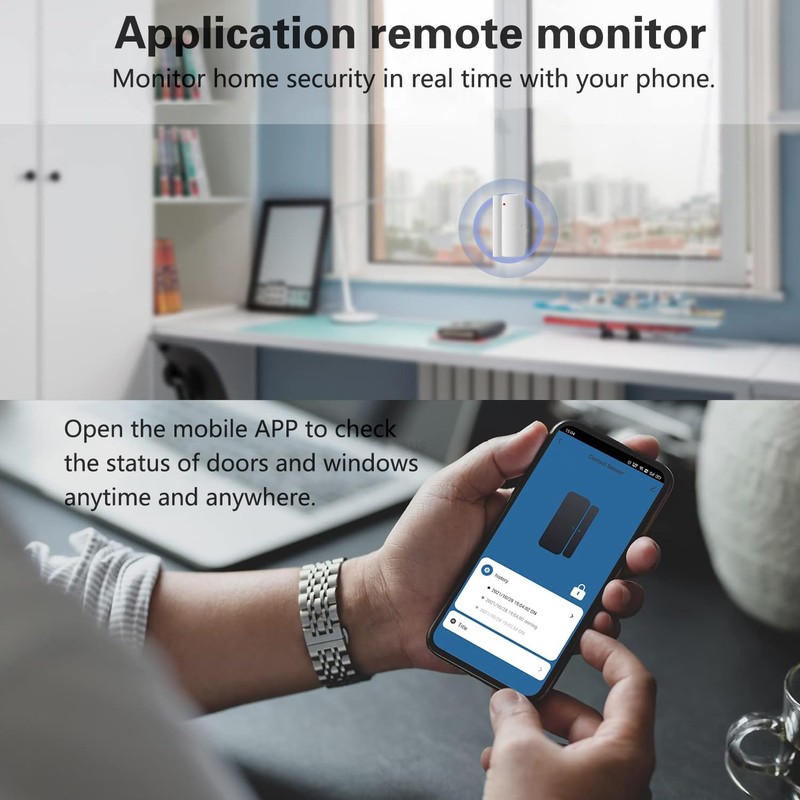 - ⭐【APP Remote Access and Monitoring】: Through WiFi smart door sensors, you can access the status of doors and windows anytime and anywhere. Whether you're out and about or just lying in bed, you can keep an eye on your home. You no longer have to worry about someone entering your home without permission.