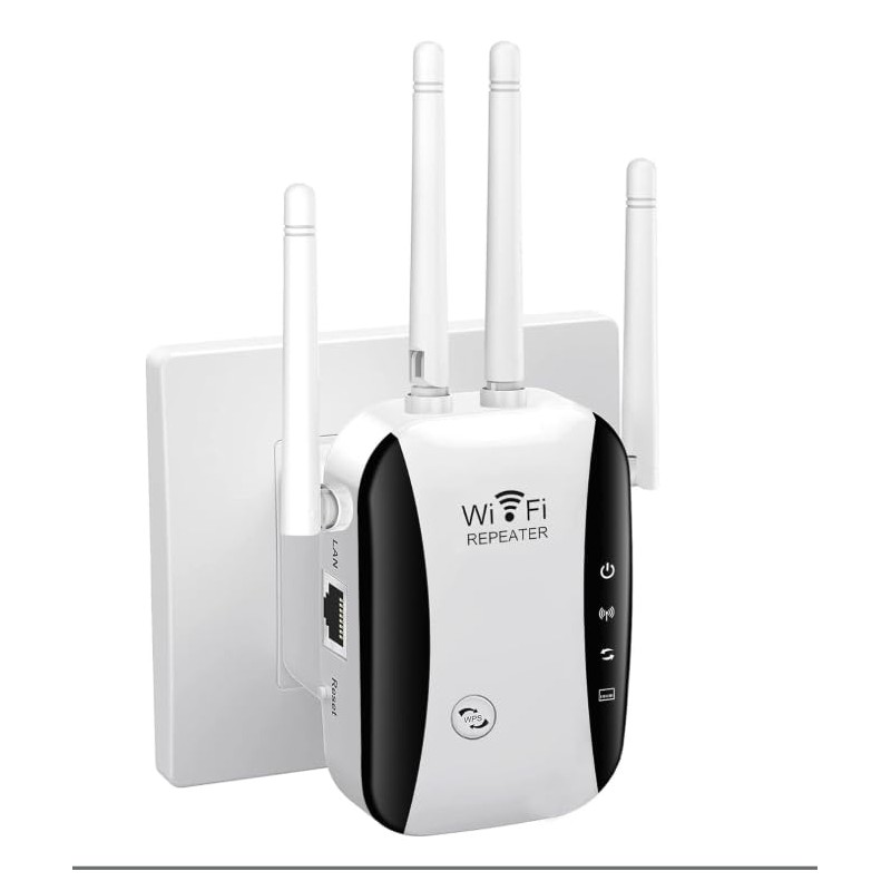 WiFi Extender Booster 4 Antennas Up to 5000 Sq.ft and 50 Devices WiFi Repeater, Wireless Internet Repeater with Ethernet Port 1-Click Setup, Access Point UK plug - White