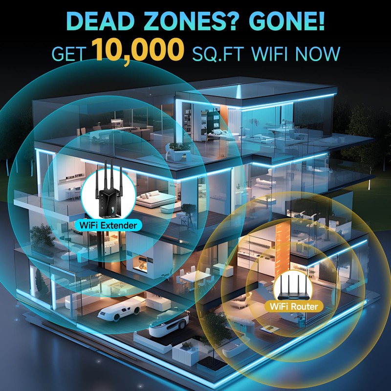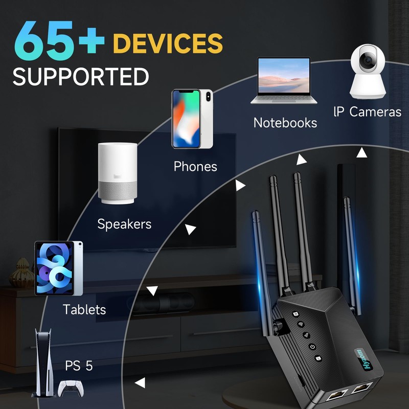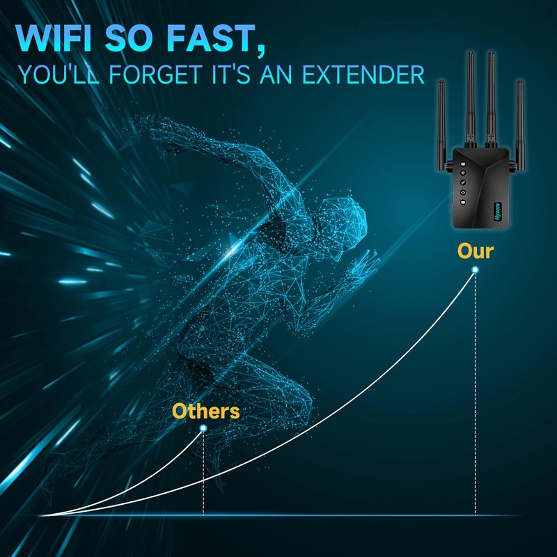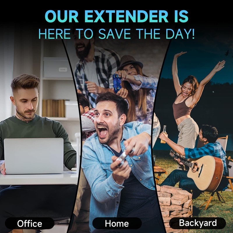- Bionic Chip & Long-Range Penetration: Powered by an advanced Bionic Chip and 4 high-gain antennas, this internet extender WiFi booster achieves 5X faster speeds. Maintain lag-free gaming on PS5/Xbox and buffer-free Zoom calls on your laptop, even through multi-story homes