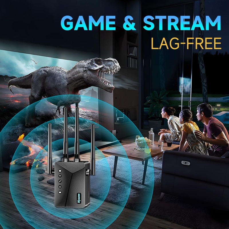 - 120% Wider Coverage Across 10,000 Sq.Ft: Hyzom's WiFi Extender Signal Booster blasts through concrete walls and appliances, eliminating dead zones in homes, garages, and outdoor. It delivers 120% wider coverage than standard routers - perfect for 4K streaming across 10,000 sq.ft