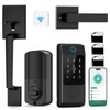 WiFi Front Door Lock Set - Miuedo Keyless Entry Door Locks Handle Set, Fingerprint Smart Alexa Keypad- Smart Deadbolt Lock with Handle Latch - WiFi Access Bluetooth APP-Black