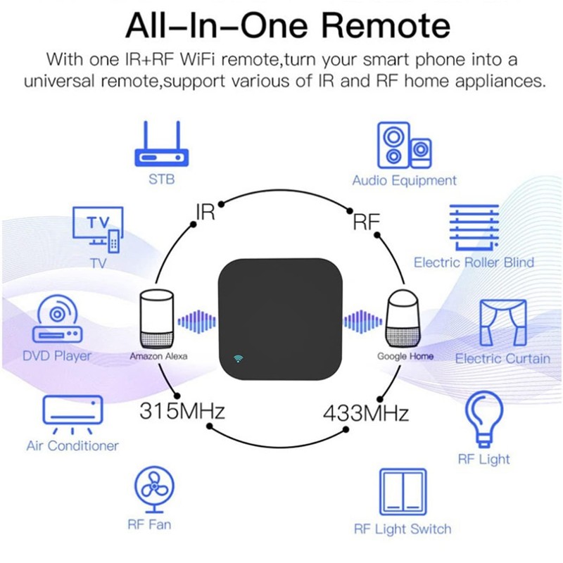 - HIGH COMPATIBILITY : Smart home hub support RF 433/315 MHz controlled devices such as curtain/shades motor and projector; Support 50,000+ IR 38KHz controlled devices such as TV, STB, Air conditioner, Fan and more; Supported devices library is constantly being updated by the cloud, so your remote controller is always compatible with newer devices.