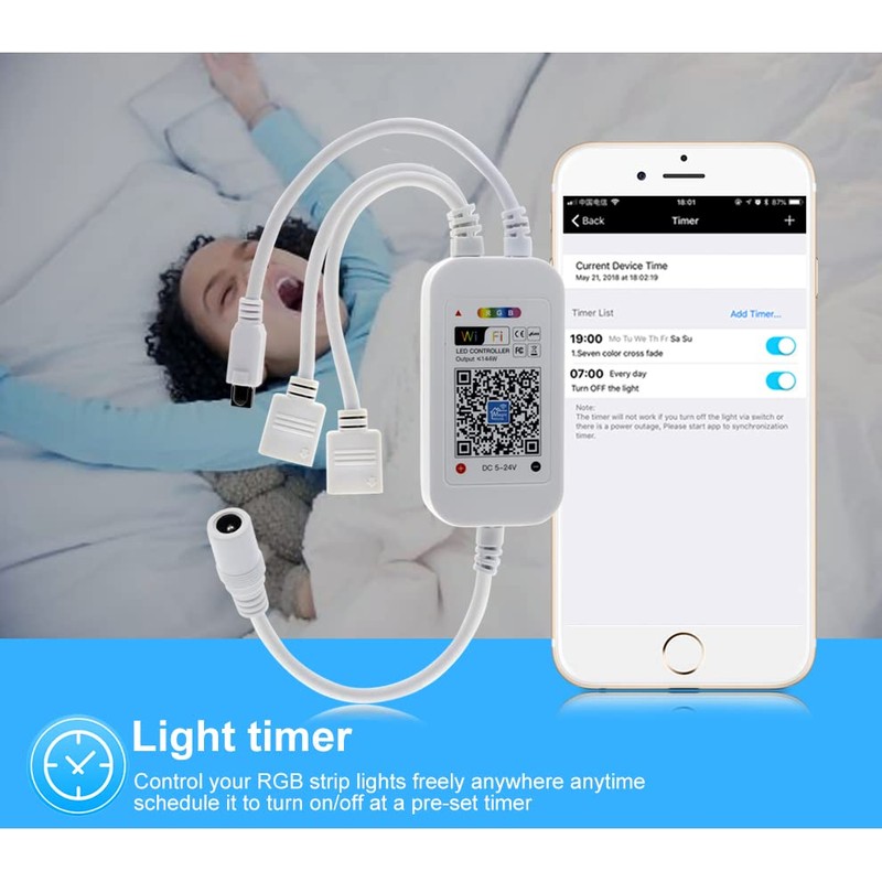 • LIGHT TIMER Freely control your RGB strip lights anytime and anywhere and schedule to turn it on and off with a preset timer