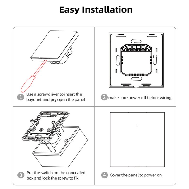 1、Remote Access: Access and control your light from anywhere in the world, ensuring convenience even when you are not at home. 2、Voice Control: Works with for Google Home for voice control, allowing you to control your devices with just your voice. 3、Timer Function: Set timer for automatic on or off switching of your light, saving energy and providing convenience. 4、Safe and Reliable: Strict testing and certification ensure the safety and stability of the switch, providing you with a safe user experience. 5、Easy to Use: This smart WiFi light switch supports for IOS mobile phones, you can directly use for Homekit scan to add code of the switch.