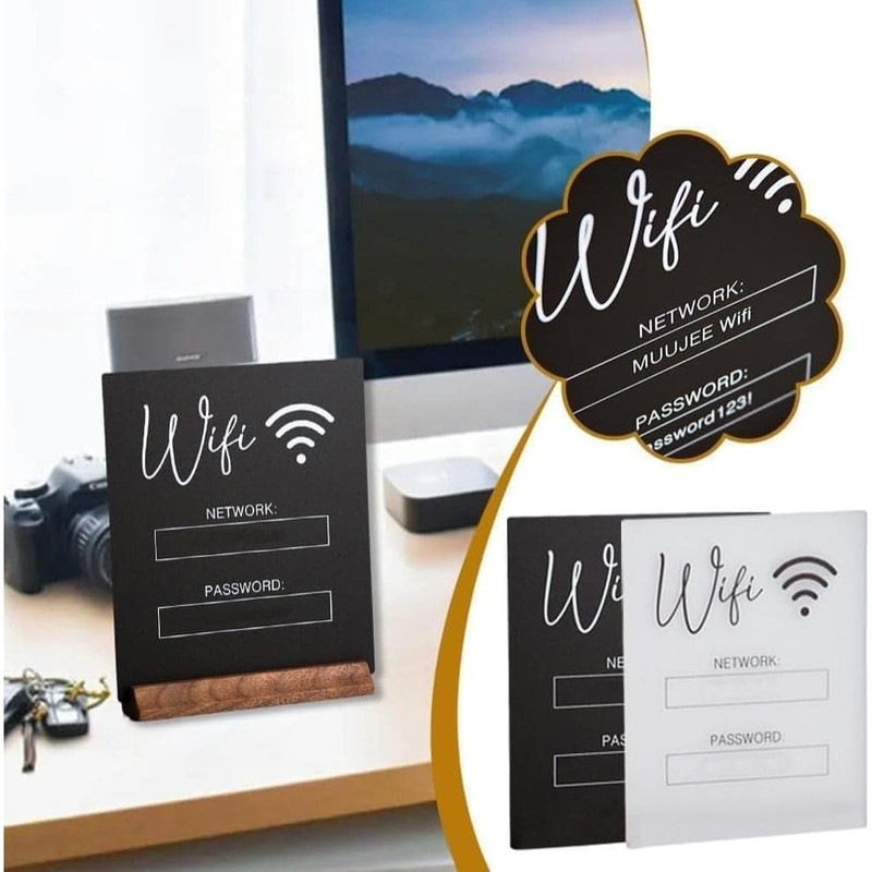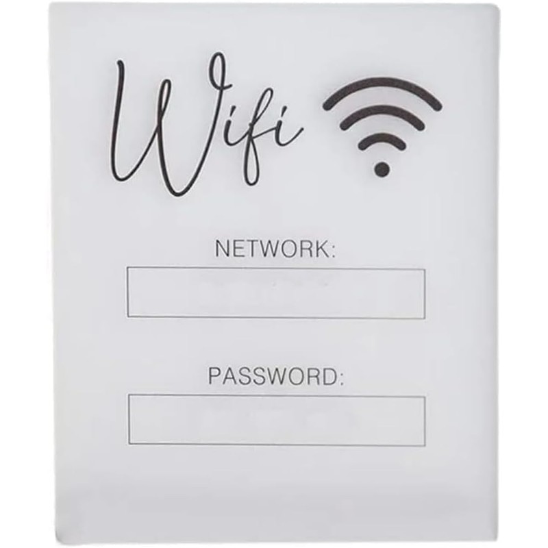 Welcome your guests with style using this elegant acrylic WiFi password sign. Perfect for homes, offices, cafes, or any space where you want to share network access gracefully. The sleek, modern design features clear acrylic construction that complements any decor while displaying your WiFi credentials in an organized, easy-to-read format. This freestanding sign board eliminates the awkward moment of repeatedly sharing network information, allowing visitors to connect seamlessly. Though it comes without a base, the durable acrylic construction ensures stability when placed on any flat surface. The professional appearance makes it ideal for both residential and commercial settings, adding a thoughtful touch to your guest experience while maintaining a sophisticated aesthetic. Keep your space organized and your guests connected with this practical yet stylish WiFi password display.