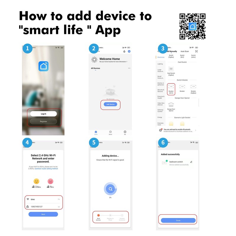 2. APP remote control: This smart switch is only suitable for the Smart Life application of Tuya Company (WiFi 2.4 GHz). No matter where you are, you can control your curtain equipment anytime and anywhere.