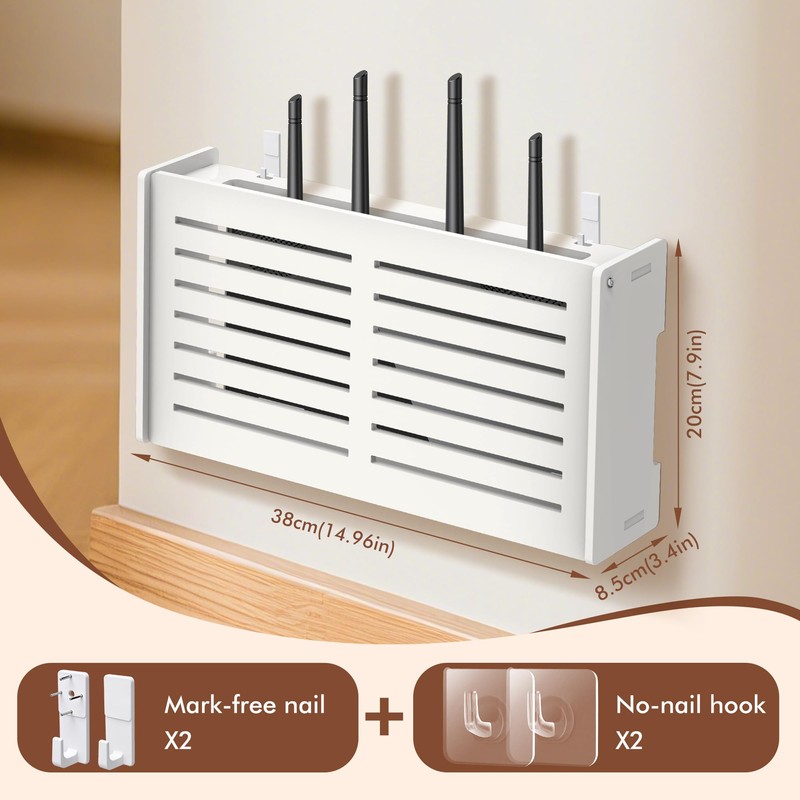- No Drill Installation & Strong Hold】 Mount your router box hider securely in minutes without damaging your walls! We include 2 strong adhesive hooks and 2 non-marking nails for versatile mounting options. Just peel, stick, and hang. It's that easy to achieve a tidy space.