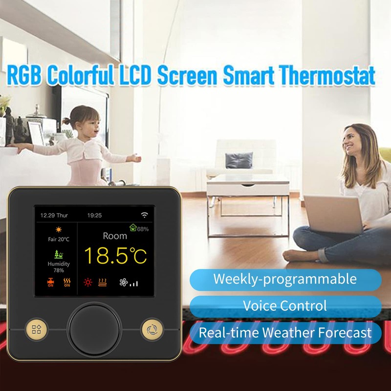 WiFi Smart Boiler Thermostat with RGB Colorful LCD Display Intelligent Thermostat Indoor Constant Temperature Controller Digital Programmable Thermostat Black&Gold
