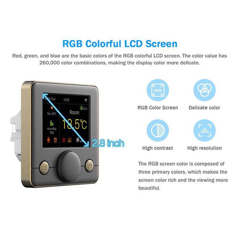 [RGB Colorful LCD Display]WIFI Smart Thermostat with 2.8inch large RGB colorful LCD screen for easy reading, and it displays indoor temperature, time, week, etc.
