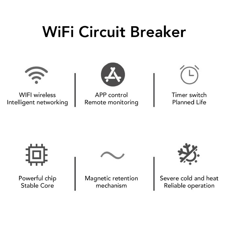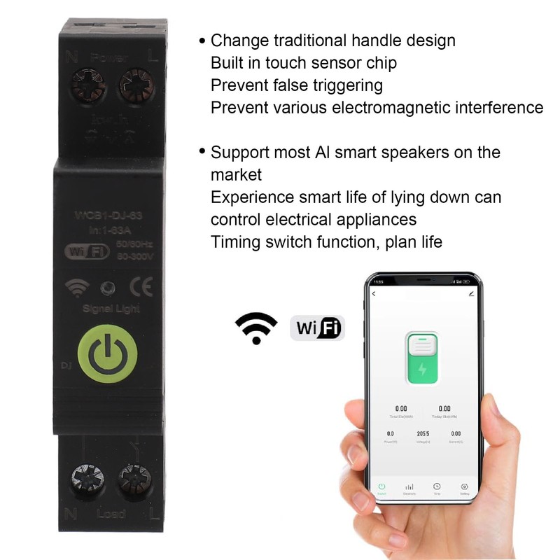 1、INTELLIGENT TOUCH SWITCH: The circuit breaker switch change the traditional handle design, and the built in touch sensor chip can prevent false triggering and prevent various electromagnetic interference requirements 2、REMOTE APP INTELLIGENT MANAGEMENT: Circuit breaker timer can control the switch at home, venue and outdoors through the mobile phone, and turn on or off the power of the device at any time, such as lighting timing 3、SMART SPEAKER VOICE CONTROLLABLE: Smart circuit breaker switch support most Al smart speakers on the market, allowing you to experience the smart life of lying down can control electrical appliances, timing switch function, plan life, electrical timing anytime and anywhere, so that to relax yourself after a busy day, convenient life can bring you pleasure 4、DIN RAIL INSTALLATION: WiFi circuit breaker switch installation is simple and convenient, rail installation has the advantages of easy networking, easy maintenance, after high strength treatment, bring uniform texture, beautiful surface, more gloss, and strong corrosion resistance 5、WIDE APPLICATION: WiFi smart circuit breaker time relay switch has sensitive signal, refuse high delay, meet the needs of various environments, such as home, school, shopping mall, office, irrigation farm, pump, rental house and other electrical equipment remote control