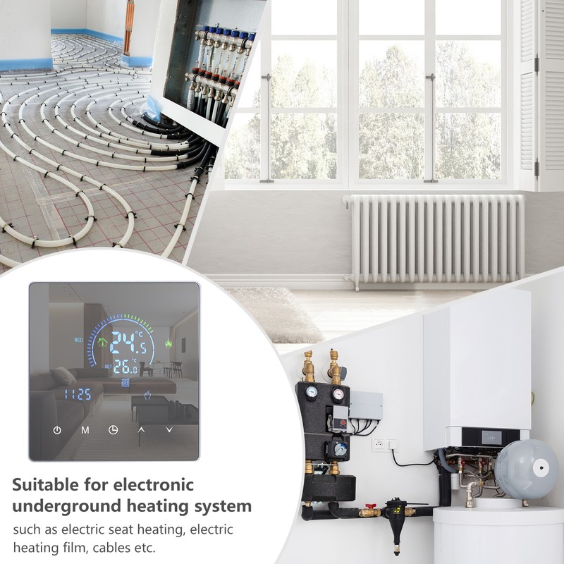 WiFi Smart Intelligent Thermostat Temperature Controller for Electric Heating Equipment LCD Display Touch Button Programmable App Remote Control Underground Heating for Home Office School Hotel
