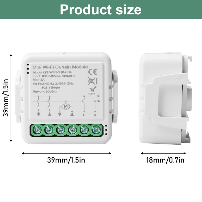 - App remote control: Connect WiFi smart roller shutter switch module directly to your 2.4G WiFi network to allow unlimited remote control via "Smart Life" or "Tuya" app (compatible with Android and iOS) No hub required. Let your mobile phone become a convenient remote control and control the roller shutters anywhere and enjoy the intelligent life. (Only supports 2.4GHz WiFi)
