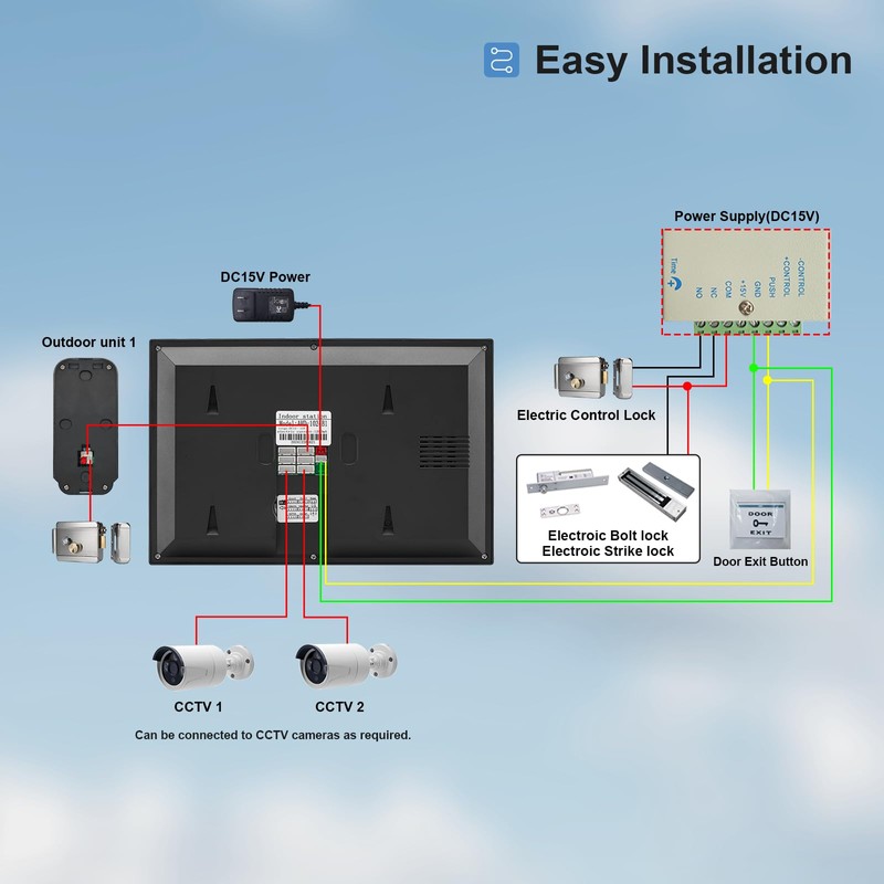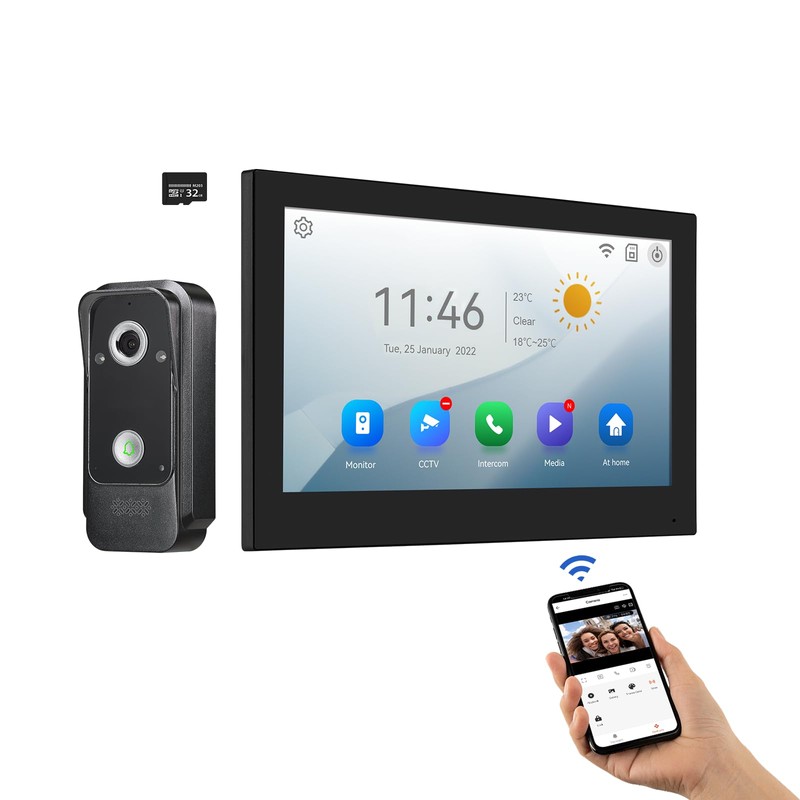 - Intelligent Control: Strong connection ability, support up to 4 indoor units, 2 outdoor units and 2 CCTV, complimentary 10m line and 32GB card, and support up to 128GB TF card expansion, suitable for apartments, villas, hotels, offices and other places. You can open the lock remotely through the Tuya APP and keep track of the situation at any time.