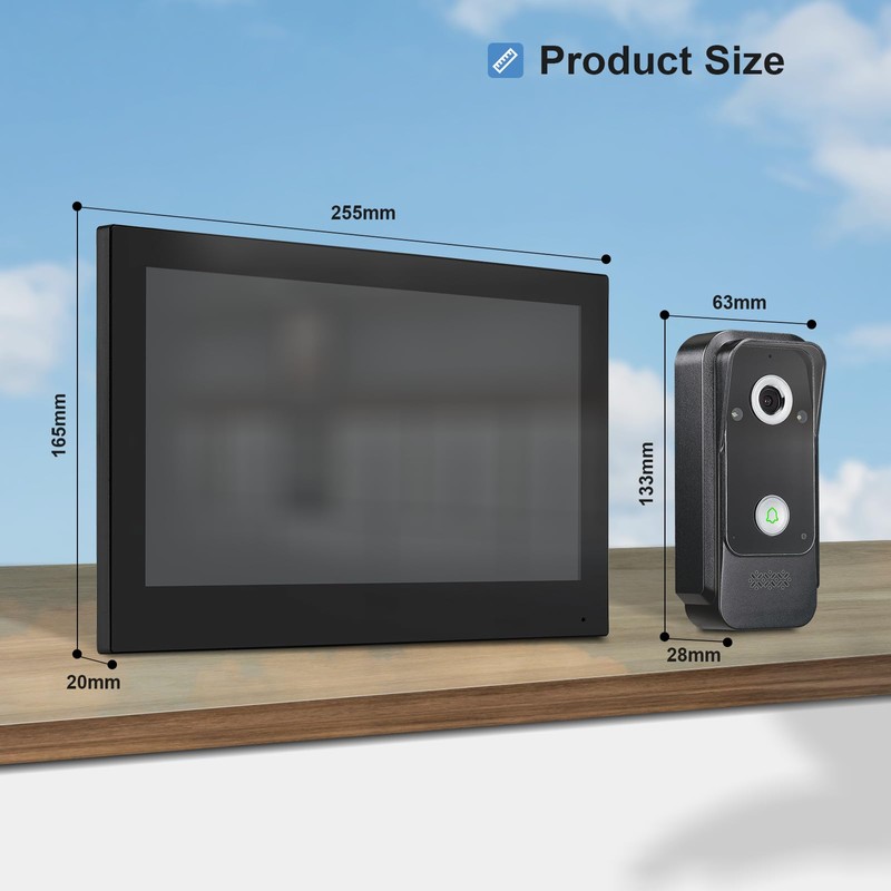 - Two-Way Intercom: WiFi wired video doorbell camera 10-inch display can achieve real-time two-way intercom communication. With motion detection and anti-intrusion alarm function, video recording content can be played on demand at any time. With infrared full-color night vision and 120° wide-angle lens, there is no blind spot for day and night monitoring.
