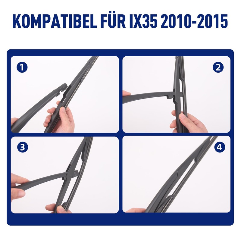 - Windscreen wiper accessories included: rear windscreen wiper set for Hyundai iX35 2010 2011 2012 2013 2014 2015. The fit is perfect and they sit firmly on the windscreen without wobbling or making noise.