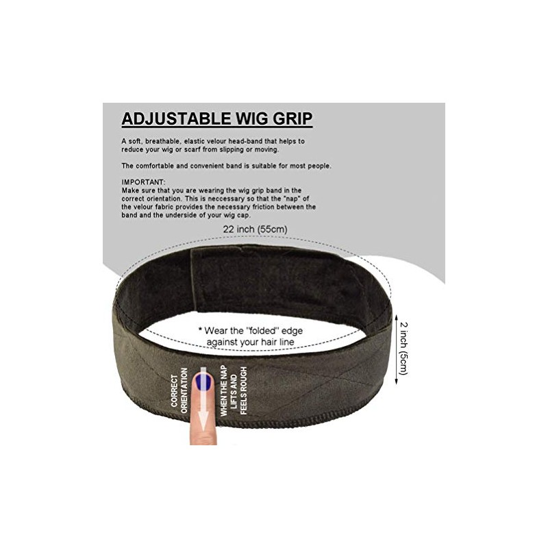 - TYPE: Wig Grip - A soft, breathable, elastic velour head-band that helps to reduce wig or scarf slippage., LENGTH: 22" Long, STYLE: Accessory, SIZE: One size fits most cap size.