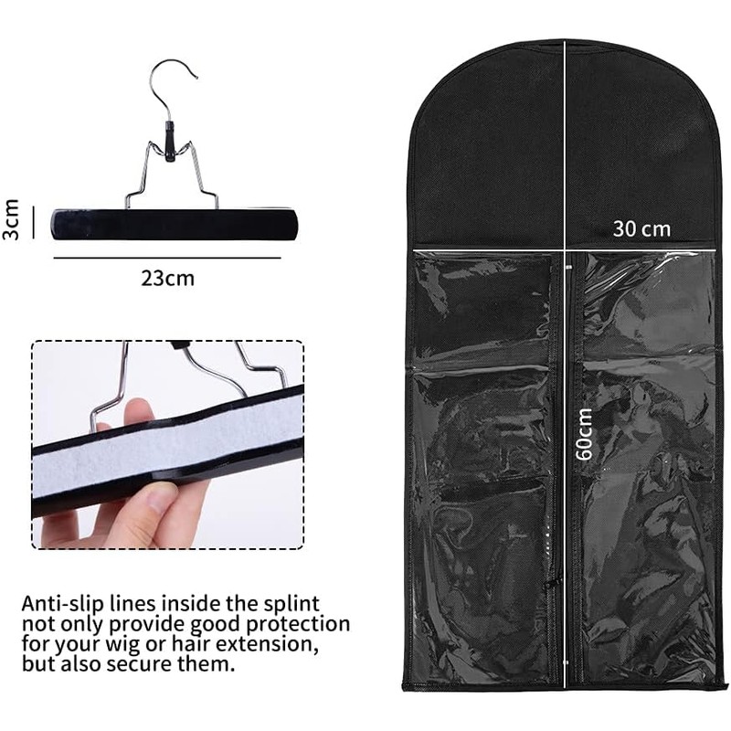 - Specification: 3 PCS per pack, 60 cm long, 30 cm wide.One pack contains 3 pieces that can be replaced, contains a bag and a rack with hooks per piece.Enough for 24inch wigs.)
