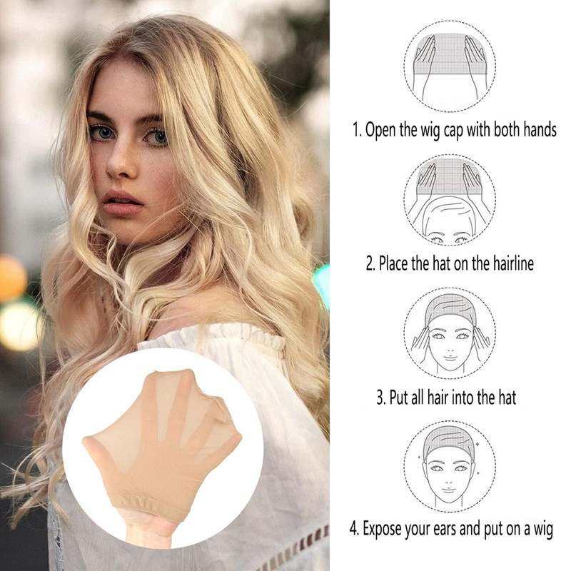 Wig Cap Set, 4 Pack Nylon Stocking Caps, Light Brown and Black