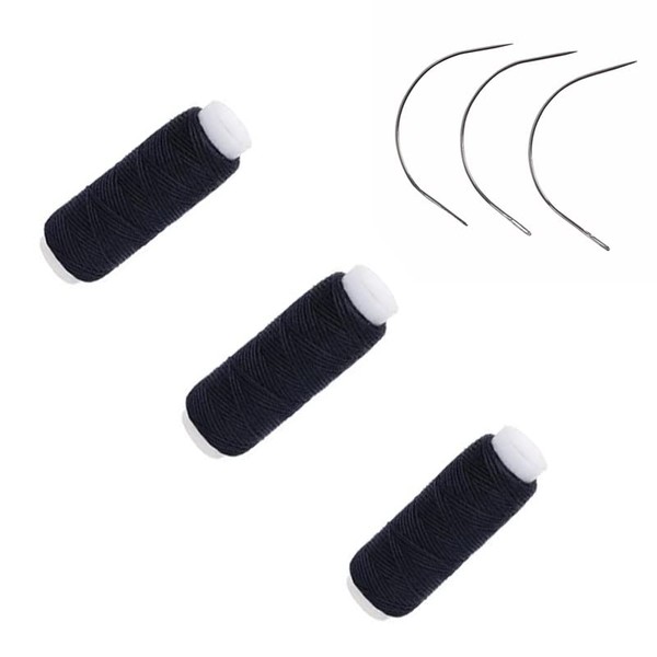 Package include: 3pcs Weaving Thread in 3 different colors black brown and beige .with 3pcs 50mm C Type Curved Needle