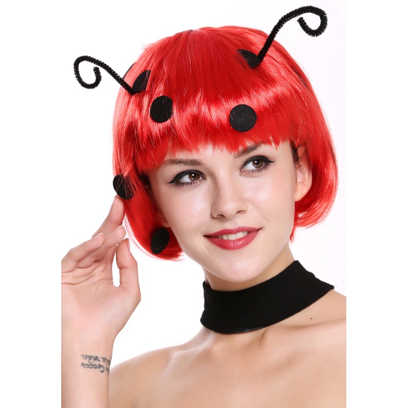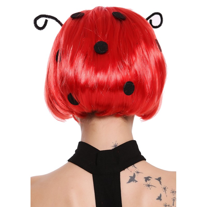 WIG ME UP 91574-ZA13 Women's Ladybug Bob Wig in Red with Black Dots & Feelers, Fancy Dress Accessory