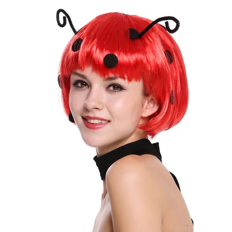 • Super cute women's ladybug wig to dress up as Marinette - red bob with black dots and black feelers.