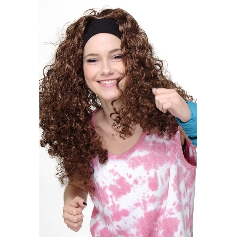 WIG ME UP - LM-153-33# LOCKENPRACHT Perücke mit Stirnband BRAUN Karneval