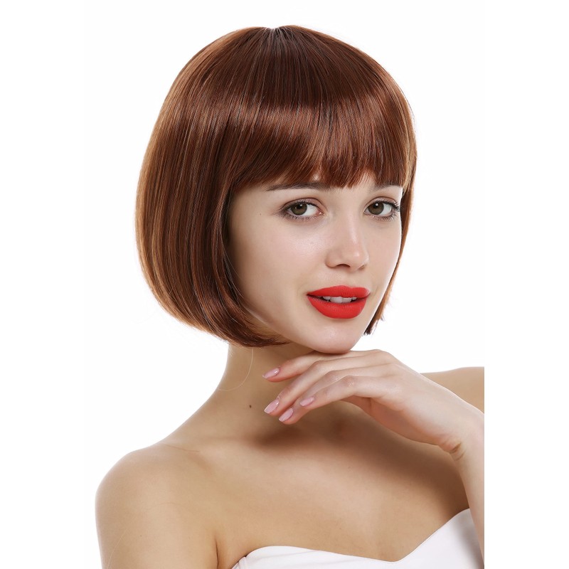 - Short lady quality wig - the classy and timeless Bob style with wide straight cut bangs and sleek copper red hair.
