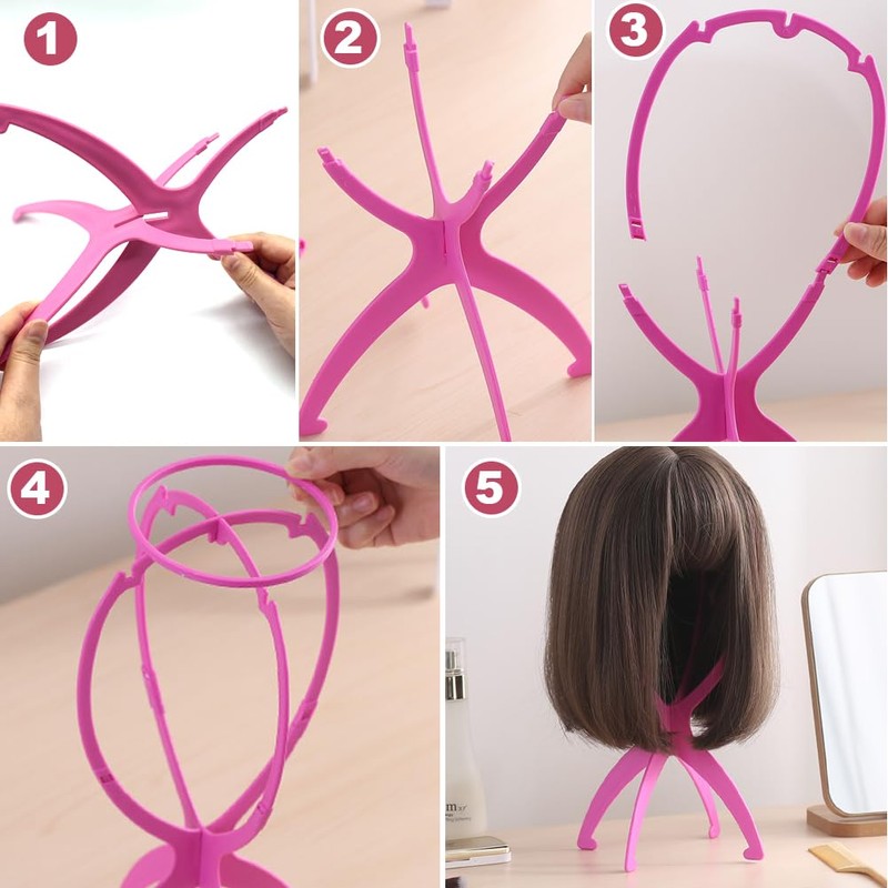 - Package includes: 1 x plastic pink wig stand and 1 x plastic black wig stand. We offer you 12-month quality guarantee and lifetime friendly customer service with these portable pleated plastic wig holders. If you have any questions about our pleated plastic wig holder, please feel free to contact us and we will find the right solution for you.