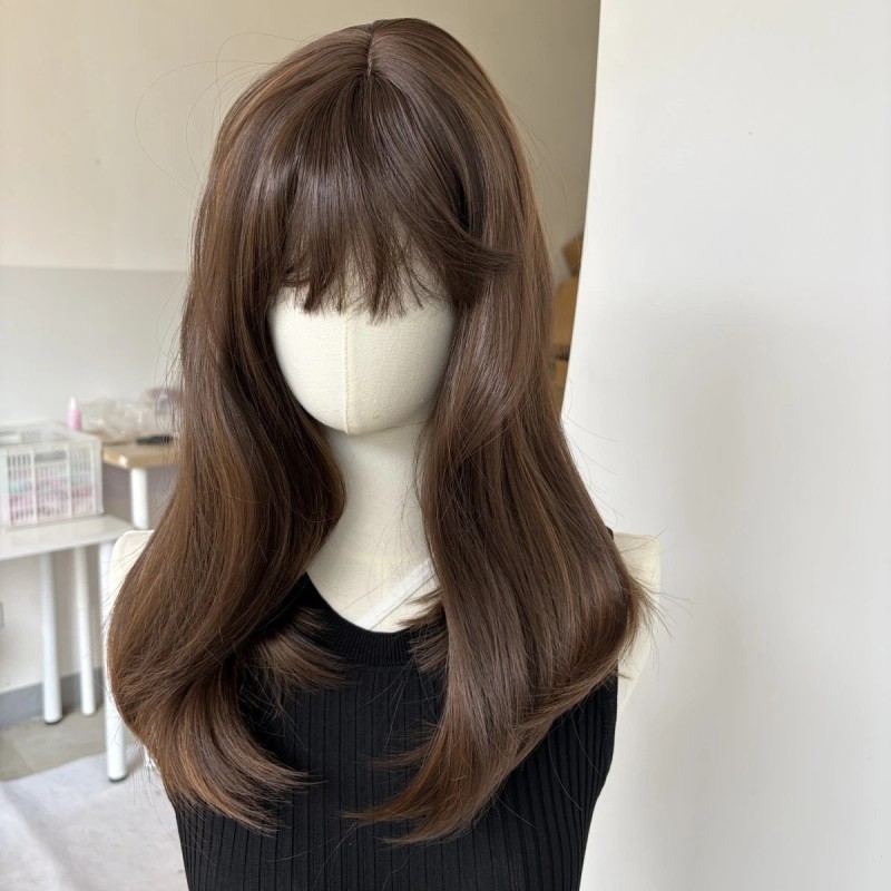 WigsA Layered Short Straight Cosplay Party Wig With Fringe Synthetic Hair Mixed Brown
