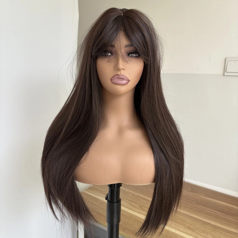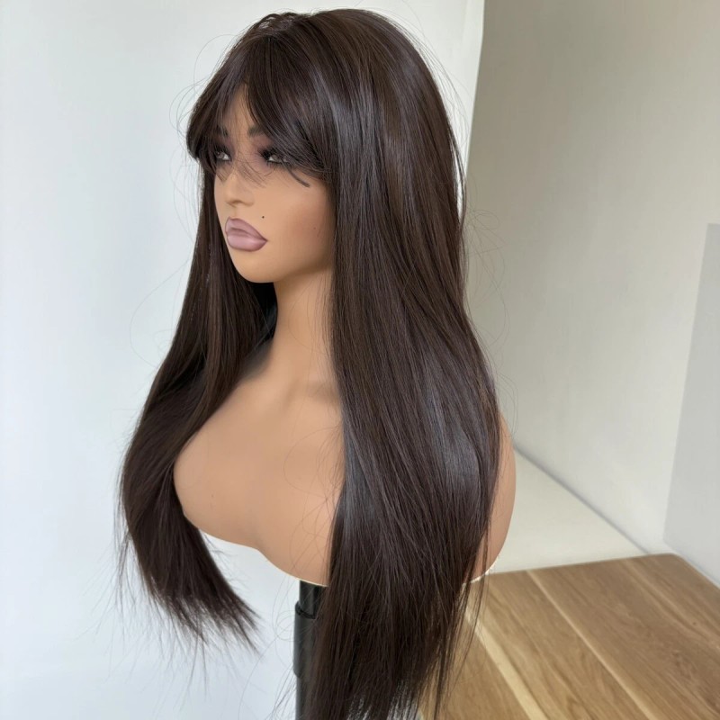 WigsA Long Straight Dark brown Heat Resistant Hair Costume Wigs With Bangs