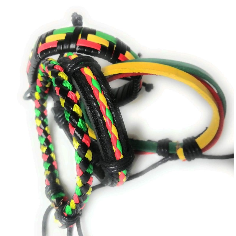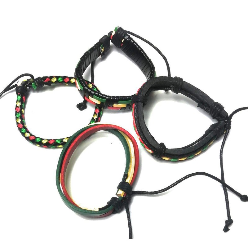 • Rasta Bob Marley Woven Leather Bracelet - Pack of 4