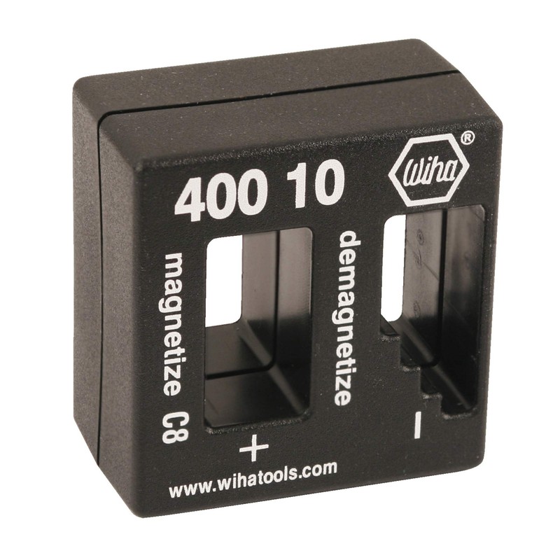 Wiha 40010 magnetize or demagnetize steel screwdriver blades, tweezers and similar tools. Box high quality plastic, shock resistant, green and cadmium free. Magnetize screw drivers, tweezers, tool bits and other steel objects as needed. When your work is finished, use the demagnetizer to remove the magnetic field. Also useful for demagnetizing tools before use on magnetically sensitive surfaces; i.e. for electronic work.