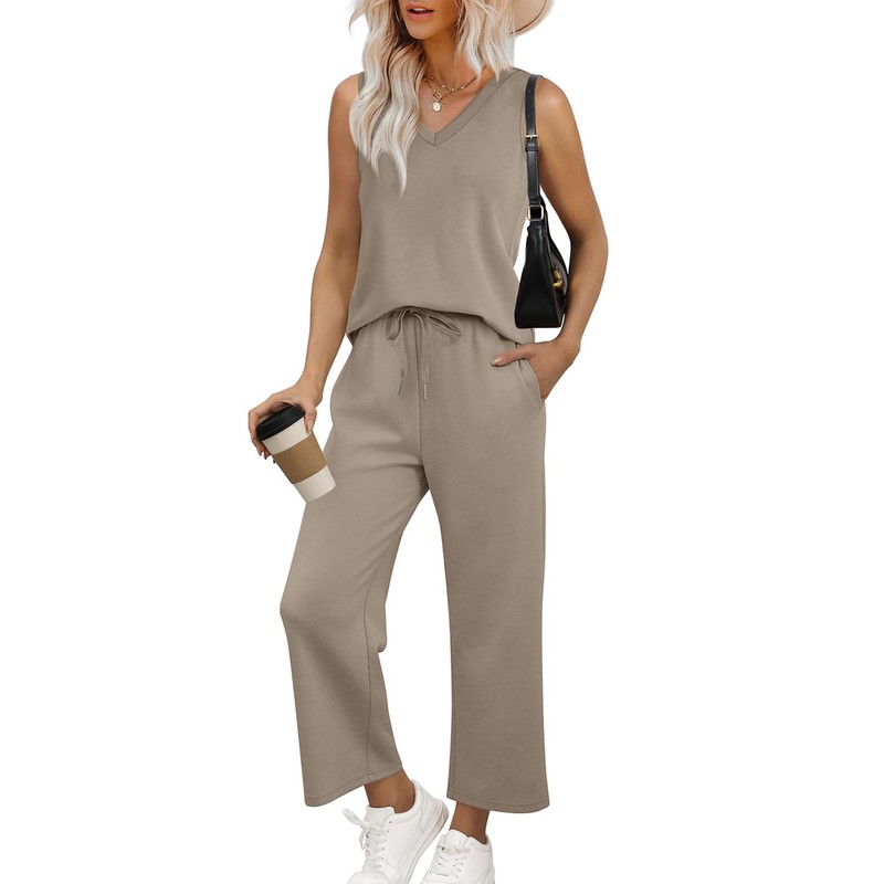 - COMFORTABLE DESIGN: Two-piece loungewear set featuring a sleeveless V-neck top and relaxed-fit pants for ultimate comfort.