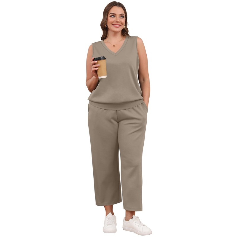 - COMFORTABLE DESIGN: Two-piece loungewear set featuring a sleeveless V-neck top and relaxed-fit pants for ultimate comfort.