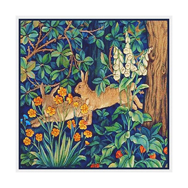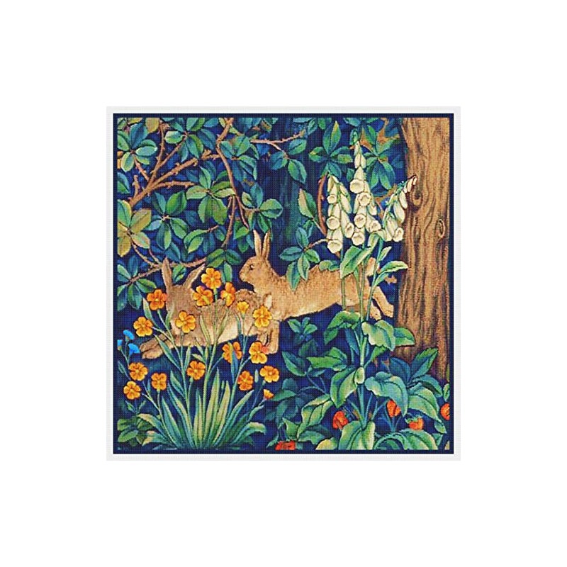 Wiilam Morris Rabbits in The Woods Counted Cross Stitch Pattern with Needles