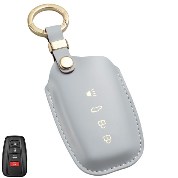 WiiLemz Key Fob Cover for Toyota, Soft Smooth Leather Key Case Shell with Key Ring for Toyota Highlander RAV4 Camry Avalon C-HR Corolla GT86 (Light Blue)