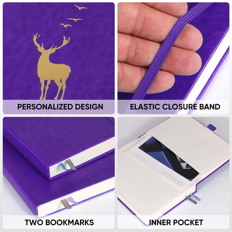 - HUMANIZED DESIGN:1 Elastic closure band to keep your pages safe; 1 Back Inner pocket for stashing notes, small gadgets, etc; Rounded corner design makes the lined notebook not easy to be damaged and curled.