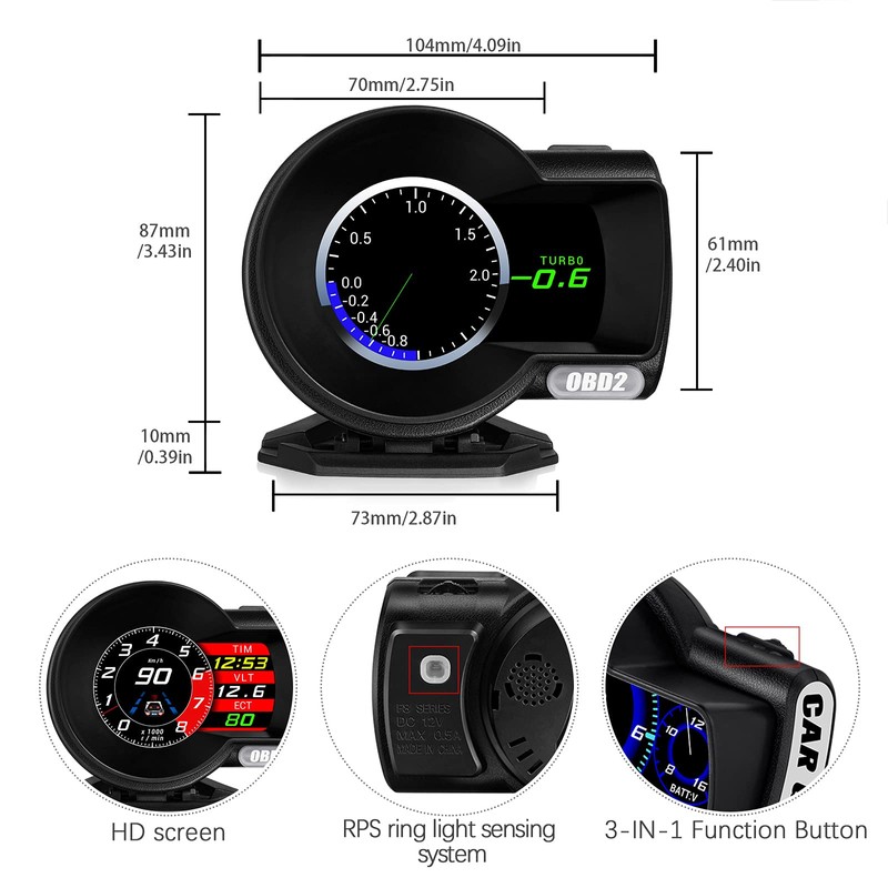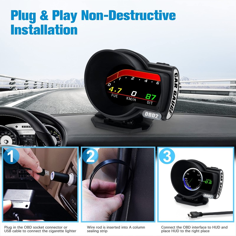 - OBD+GPS DUAL SYSTEM SMART GAUGE---Work for all cars, HD screen LCD meter simply displays directly to you at whatever angle you set it up.