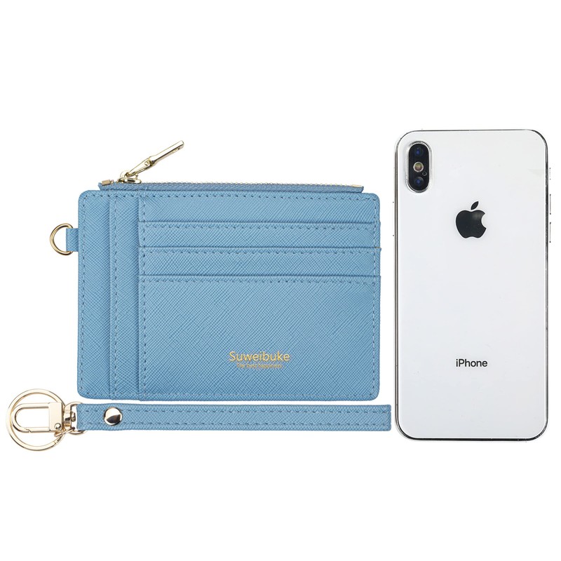 Wikavanli - Funda delgada con bloqueo de RFID para tarjetas de crédito para mujer, portafolios pequeña y compacta de piel con llavero, Azul, portafolios pequeña de moda