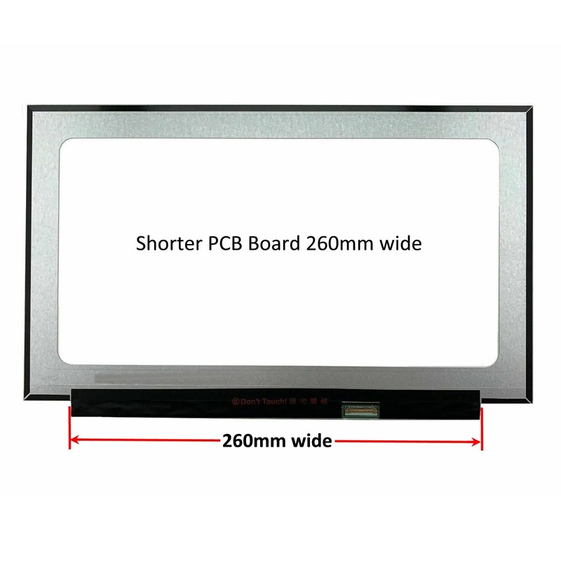 - Screen Size: 15.6" (350 MM wide); Screen Type: LED IPS Display; Screen Resolution: 1920 X 1080 (FULL HD); Frame Rate - 60Hz; PCB Length: 260MM: Screen Display Finish: Matte; Screen Connector: 30 pins (Located on Bottom Right When Looking at the back of the screen). Touch Panel – Not included; Please Note this screen is without Screw Brackets (As shown in the Picture). Please Test the screen completely before using any adhesive tapes on the screen.