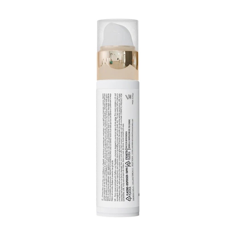 - Enthält Safran-Extrakt, Mischung aus drei Anti-Aging-Peptiden, Hyaluronsäure BPM, Vitamin E, Jojobaöl.