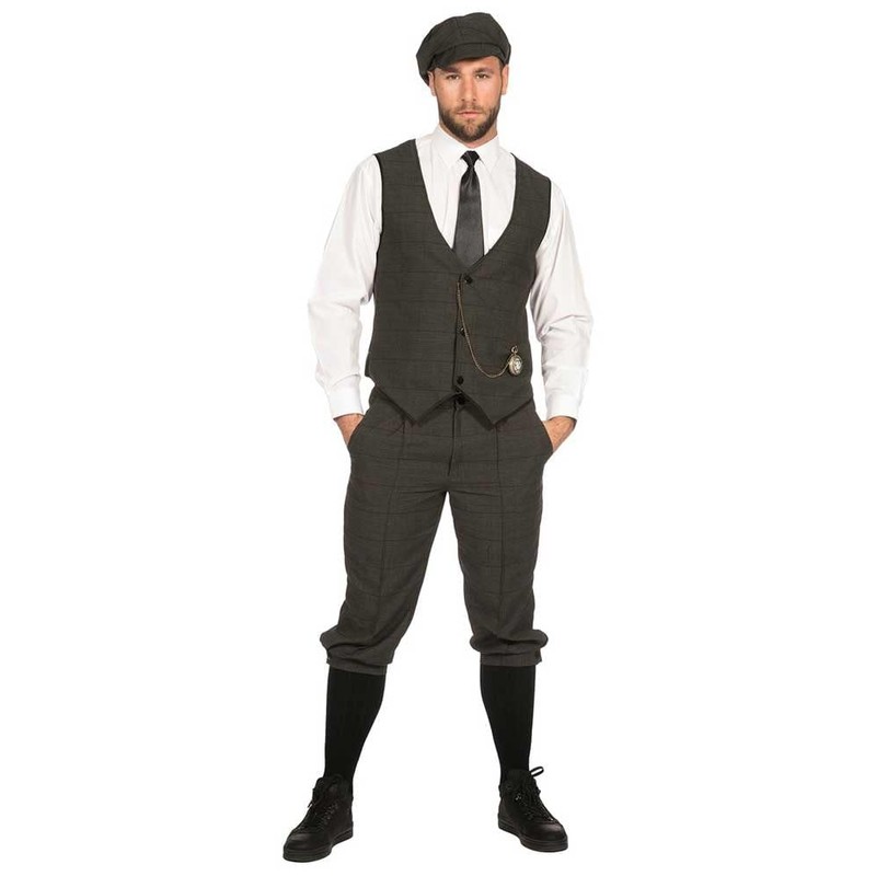The great 20s costume for men consists of the high-quality vest, trousers, and of course the classic cap.