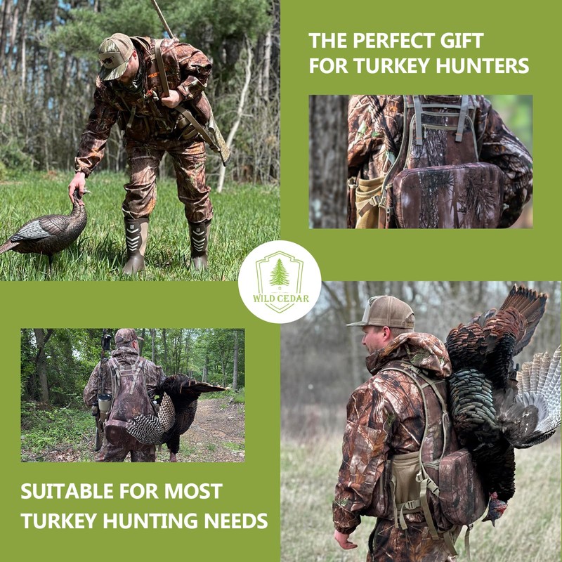 - Large Capacity & Multifunctional Pockets: The Wild Cedar turkey vest has 21 pockets to hold pot call, striker, mouth call, box call, water bottle and more. A back game bag stores your trophy Tom, and a back water bladder pocket compatible with 2L water bladder