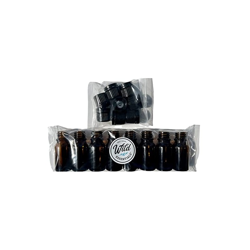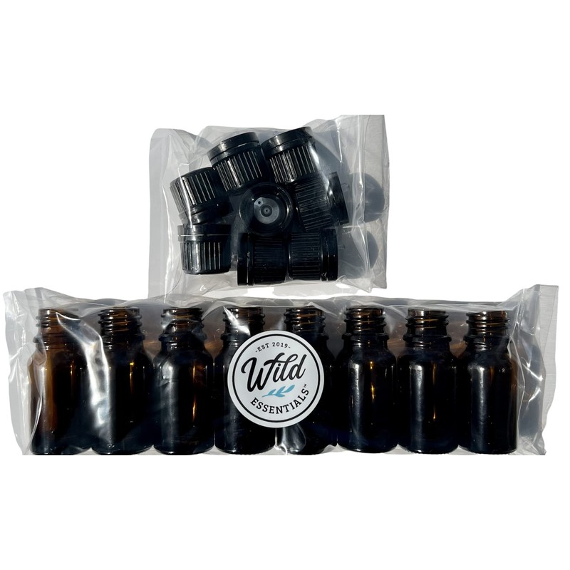 Wild Essentials 10ml Amber Glass Bottles with Euro Dropper Caps - Great for Essential Oils, Perfumes and DIY Aromatherapy - Easy to Fill, Clean and Reuse - Protective and Durable (8)