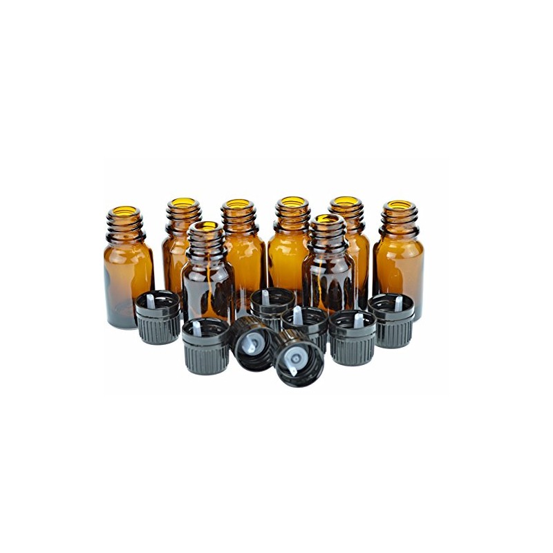 \- Convenient 10ml capacity \- Great for oils, perfumes and fragrances \- 8-piece value pack \- Euro dropper caps included \- Made with protective amber glass