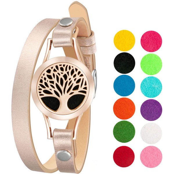 - Fashion-Forward and Functional: Stylish and versatile, we pair our one inch Rose Gold Tree of Life diffuser locket with a gorgeous adjustable rose gold leather wrap band and 12 vibrant colored refill pads! Complete with a solid back and a secure close, you’ll never have to worry about getting oil on your skin or clothing.