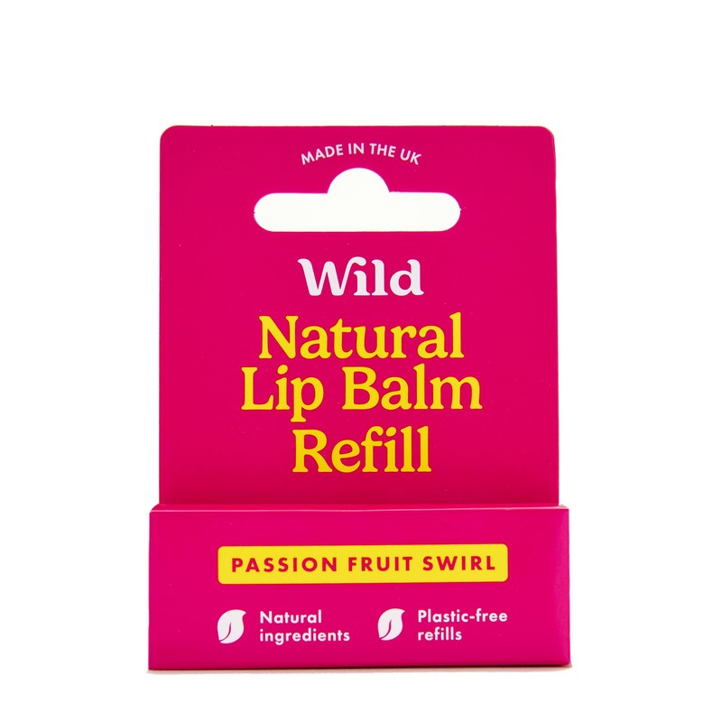 Wild Natural Refillable Lip Balm Starter Set - in Pink Aluminium Case & 3 Pack Lip Balm in Various Fragrances - Contains Peach & Mango, Coconut & Vanilla and Passion Fruit Fragrances