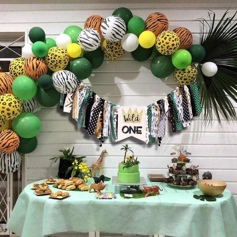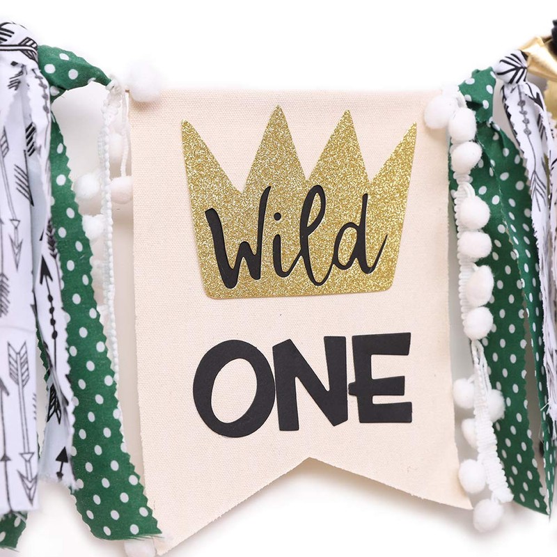 - WILD ONE - On the baby's first birthday wishes, decorate with this wild jungle theme banner, hope your baby feels free and grows up happily.